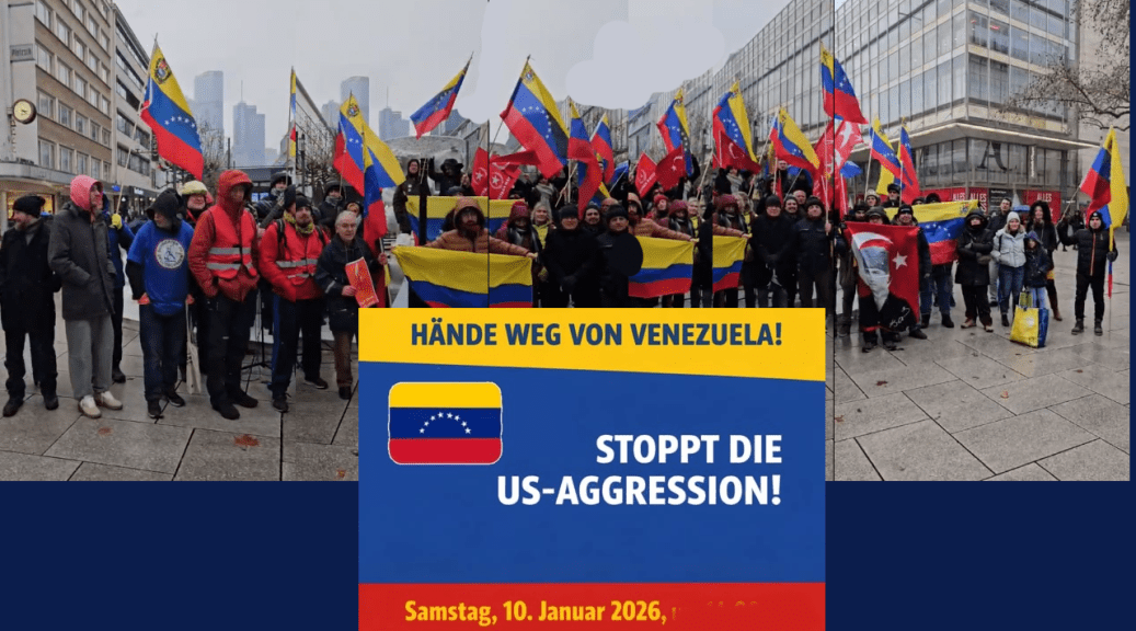 Wir rufen alle, die gegen den zionistischen Genozid an den Palästinensers demonstriert haben und gegen den Angriff auf Venezuela auf die Straße gegangen sind , auf , die Kräfte zu bündeln, um eine Macht zu werden, die diesen Verbrechern an der Spitze der Macht, das Handwerk legen kann.