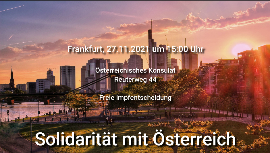 Am 27.11.21 fand eine länderübergreifende Solidaritätsdemonstration mit Österreich in 6 Städten statt, auch in Frankfurt.