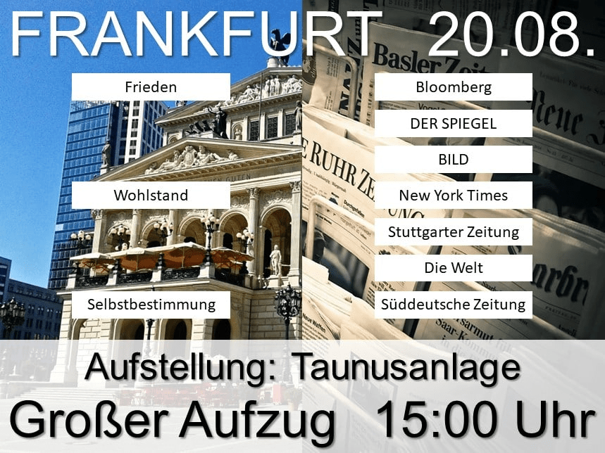 Nachdem seit Beginn 2022 die Bad Homburger Gruppe von Europeans United die Frankfurter Demonstrationen beherrschte, gab es am 20.8,22 einen wortlosen Umsturz.
