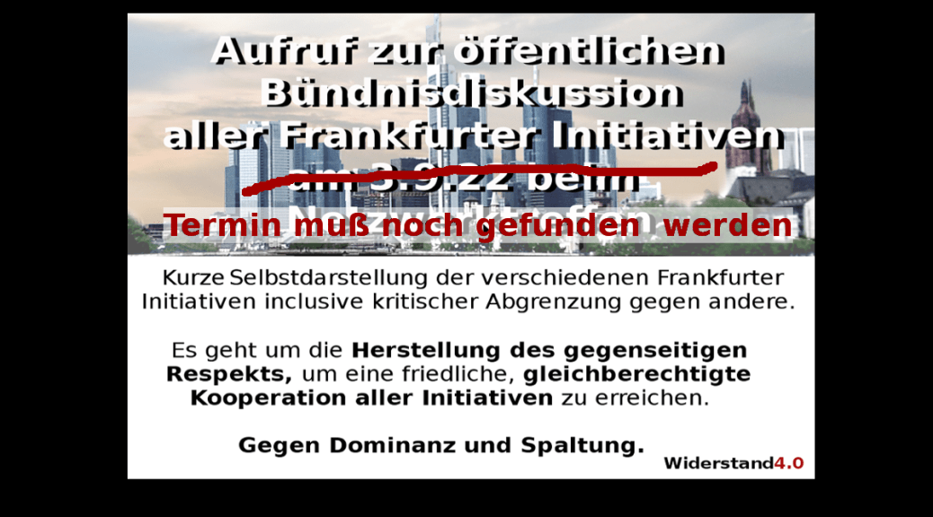 Nachdem seit Beginn 2022 die Bad Homburger Gruppe von Europeans United die Frankfurter Demonstrationen beherrschte, gab es am 20.8,22 einen wortlosen Umsturz.