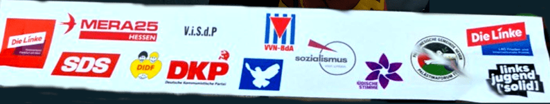 In Frankfurt gab es keine solchen Probleme bei Die Linke, wie in Berlin. In Frankfurt fand am 21.6.25 eine Demonstration unter der Führung von „Die Linke“ genauer gesagt, dem einflußreichen Vorsitzenden Willi van Oyen, statt. Es hatte sich ein Bündnis formiert, vornehmlich mit Organisationen, die man 22 Monate lang nicht als Organisatoren auf den Straßen gesehen hatte. Es war wie ein Aufwachen der Schläfer.