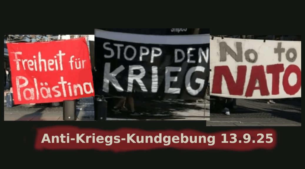 Wir stehen hier seit Februar25 gegen alle Kriege auf, gegen den Krieg in der Ukraine , und auch gegen den Krieg gegen die Palästinenser. Deswegen sehen Sie hier die Transparente gegen die Nato und für Palästina .Davor seit November 23 haben wir reine Palästinademonstrationen organisiert. Seit die Europäer , allen voran Deutschland den Ukraine-krieg eskalieren und durch Verelendung in Deutschland eine Kriegswirtschaft hochziehen, kann man darüber nicht schweigen.