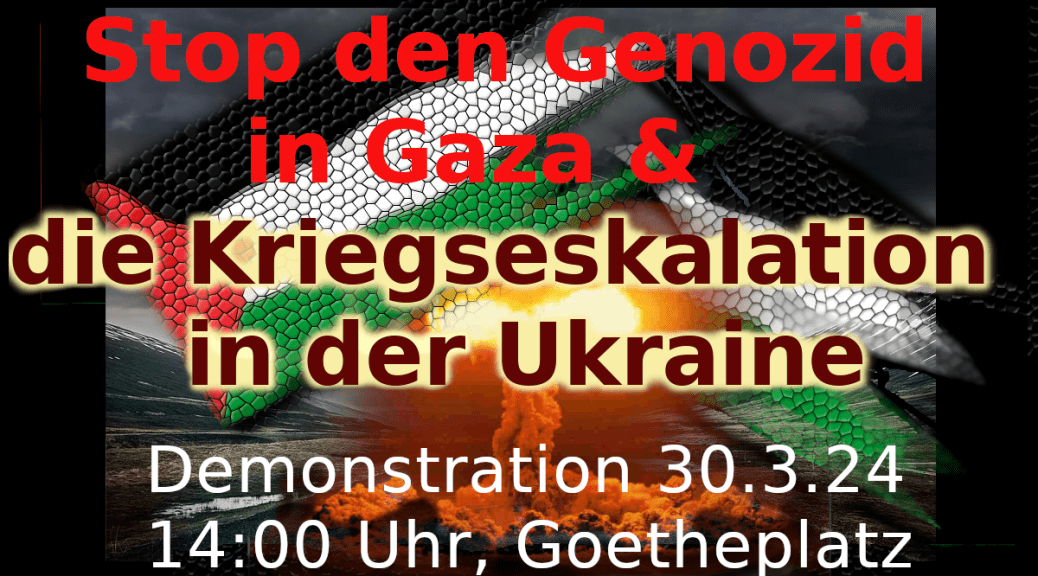 Aufruf zur Demonstration am 30.3.24 14:00 Uhr , Goetheplatz Teilen mit: Klicke, um auf X zu teilen (Wird in neuem Fenster geöffnet) X Klick, um auf Facebook zu teilen (Wird in neuem Fenster geöffnet) Facebook Gefällt mir Wird geladen …