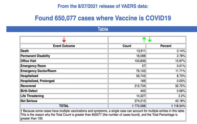 Den hohen Anteil dauerhafter Behinderungen zeigt die Tabelle aus den USA vom 27.8.2021