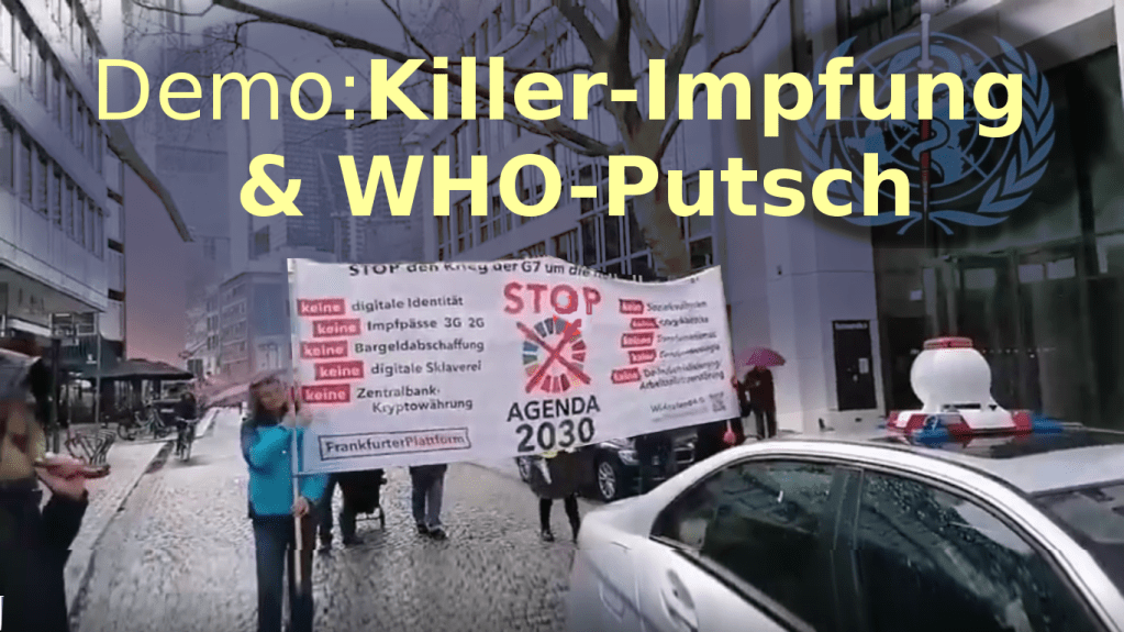 Wir lehnen die Transformation der WHO in eine faschistische WeltOrganisation, die jeden Aspekt des Lebens auf der ganzen Welt kontrollieren soll aufs schärste ab. Wir fordern: Austritt aus der WHO Schluß mit den Gen-Injektionen, die unsere Gesundheit ruinieren und uns töten ! Wir wollen keinen Transhumanismus , der uns zu digitalen Sklaven abrichtet!