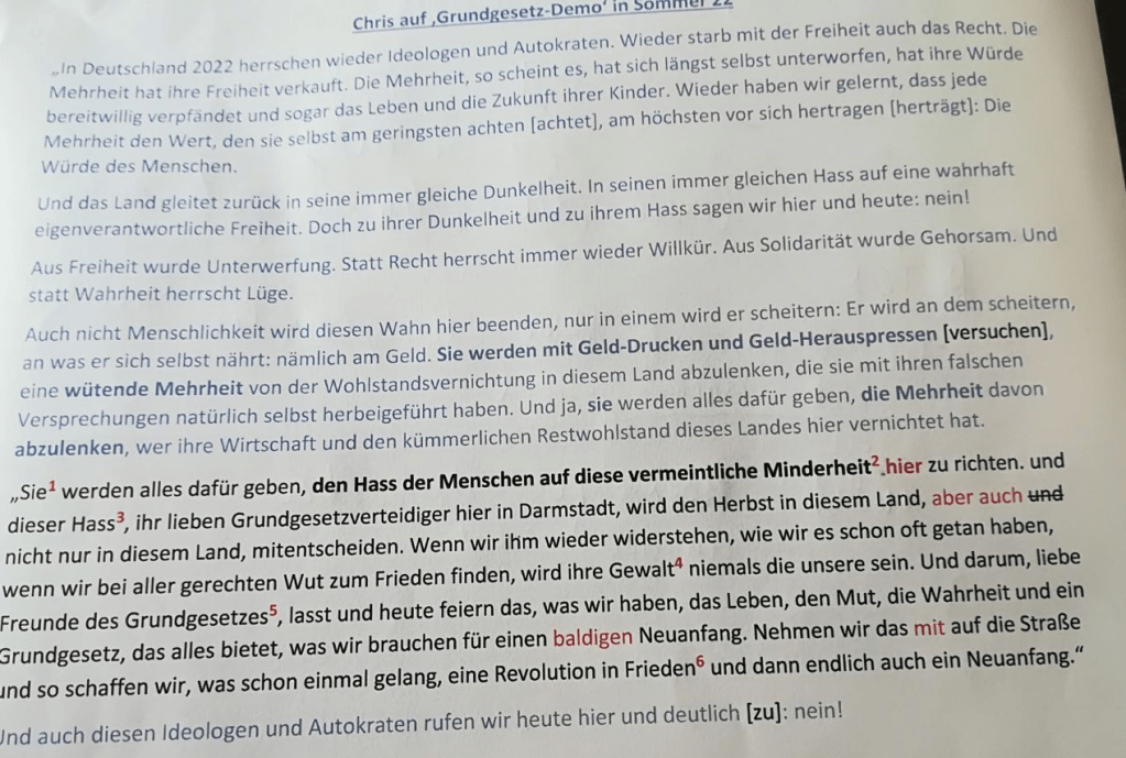 Für den 2. Teil über Querdenken 615 wurde die Rede von Chis gezeigt.